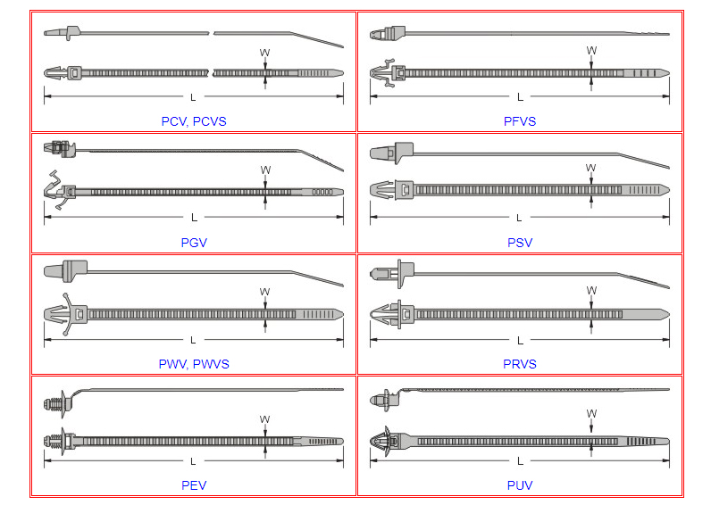 Push Mount Cable Ties securely attach cable bundles to other surfaces, such as the wall, ceiling, or a control panel, through a pre-drilled hole. Featuring a quick-mounting one-piece design for extra stability, reliability, and consistent performance, the head of the push mount cable tie can be easily inserted through the pre-drilled hole, and its tensioning wings will then quickly and easily lock into place. These versatile push mount cable ties can hold up to 50 lb. of tensile strength and mount in a 1/4" hole in any panel up to 1/8" thick.